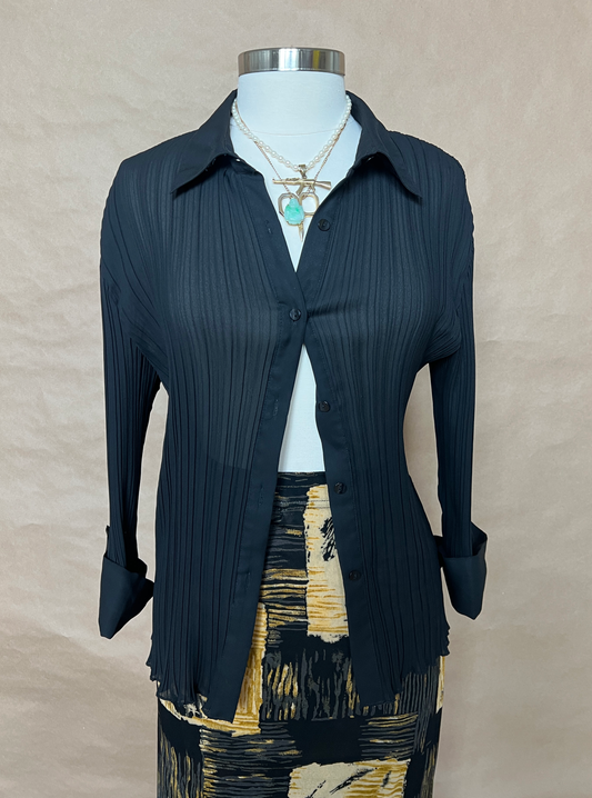 Black Sheer Button-Down Shirt